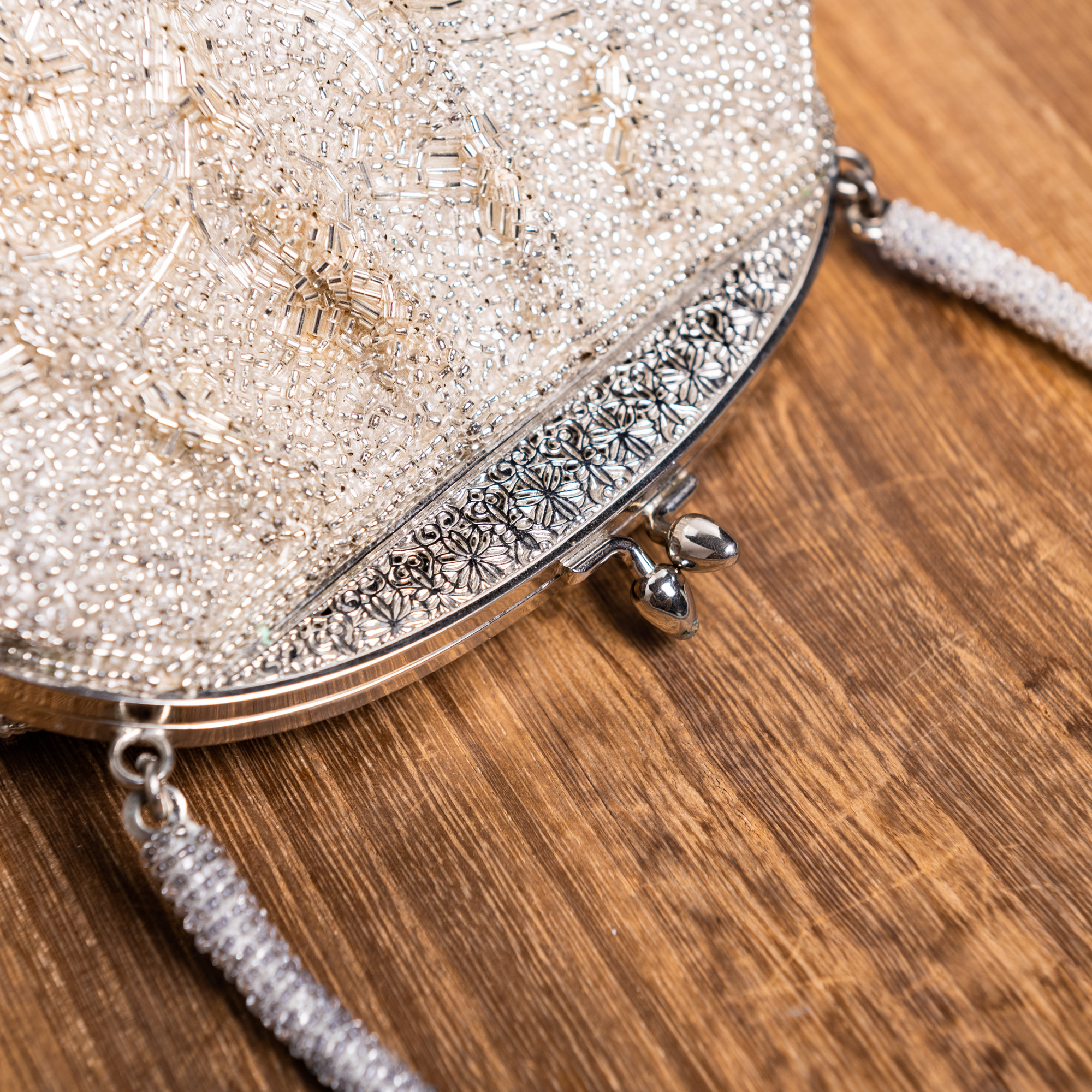 透明ビーズと透かし彫りで花唐草のビーズバッグ【bag133】