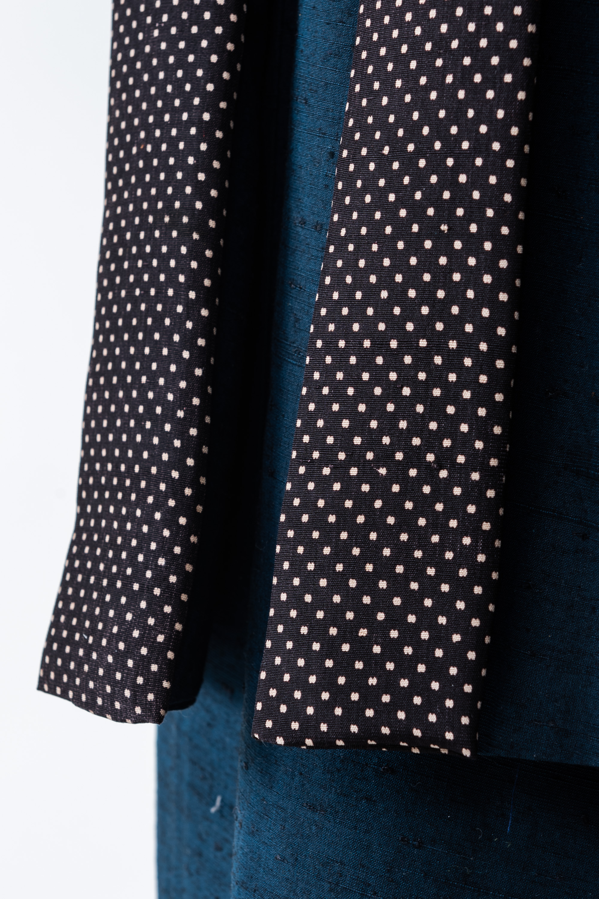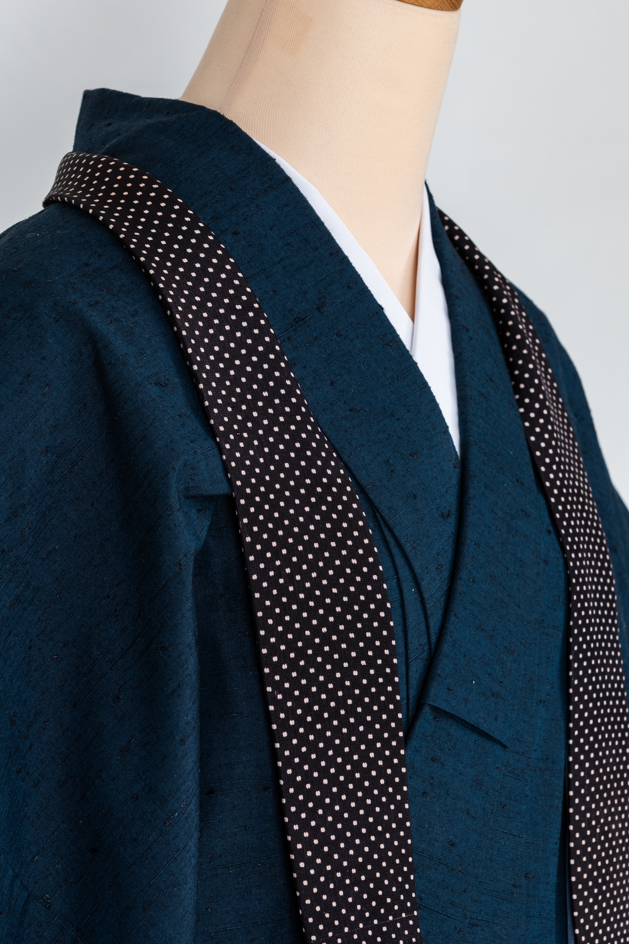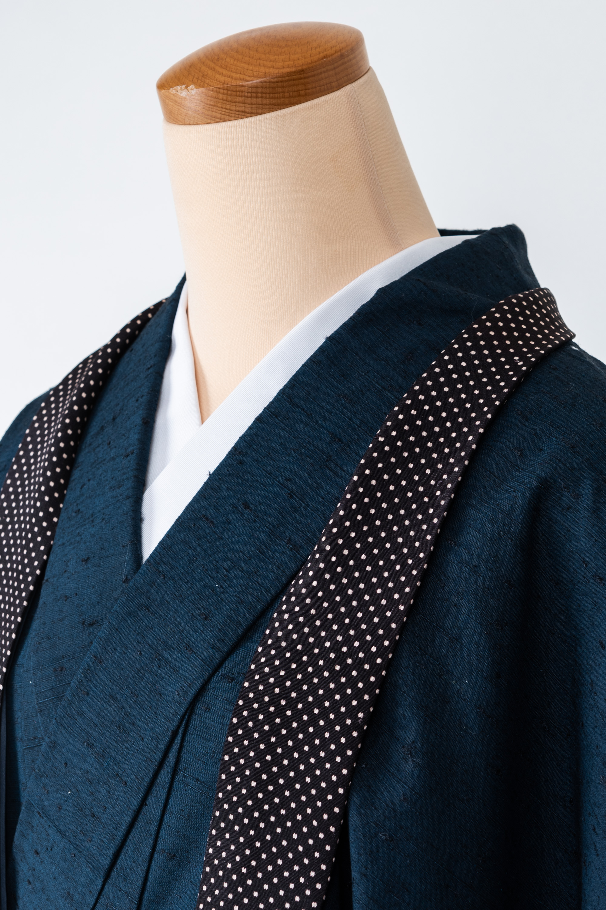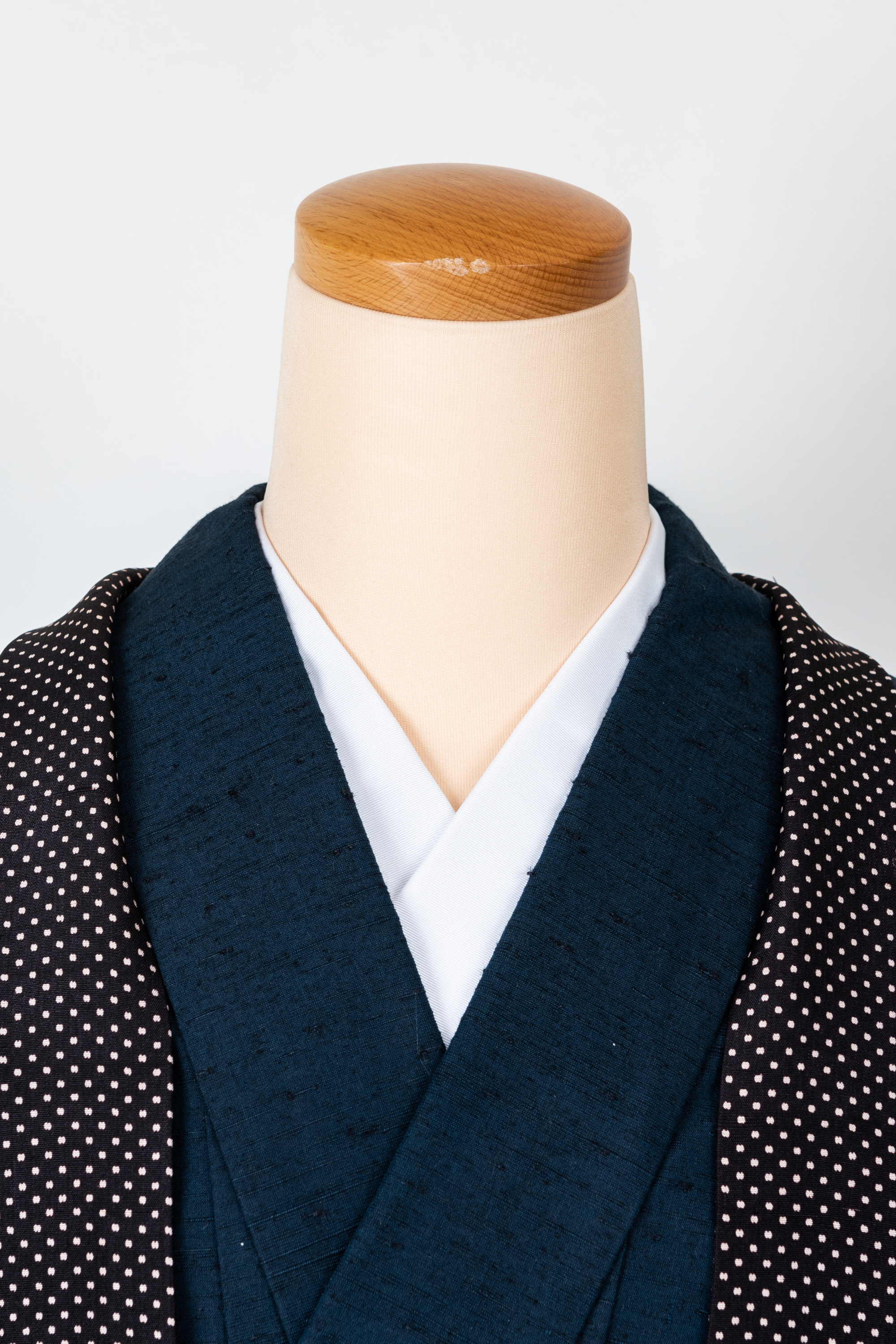 羽織の衿の部分を裄に足して、別の生地を衿に仕立てたのですよ。しかも水玉模様。ゆめやの和裁士は凄腕のうえにお茶目です。