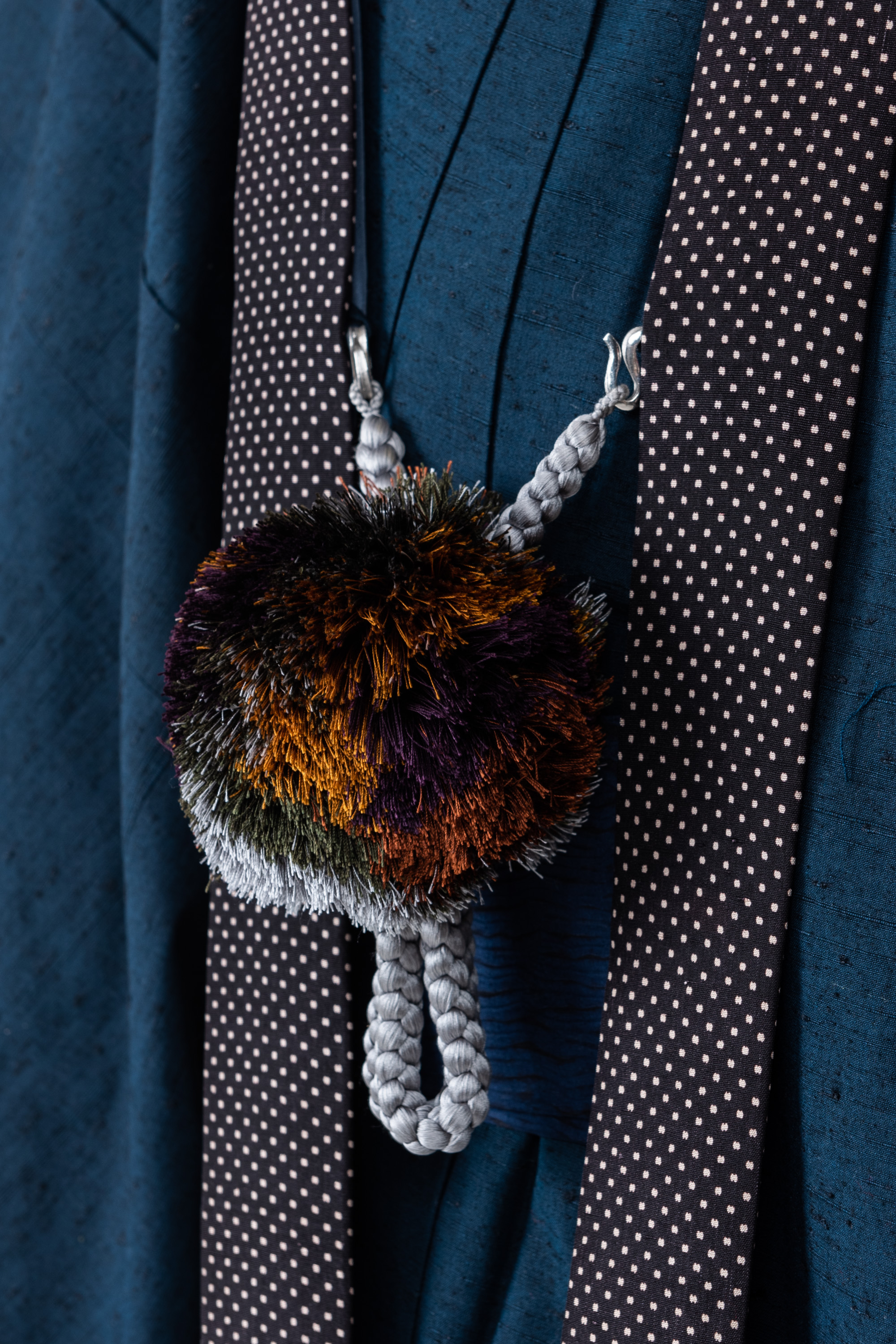 羽織の紐もかわいらしいですよ。なにかの動物がくっついているみたいでしょ。暇な時期があったのですが、何かやりたいとウズウズして、思わず足してしまいました。すれ違う人の驚くお顔が見たいです。